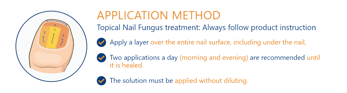 A bottle of 3.3 mL for one month usage, twice a day application on toe nail